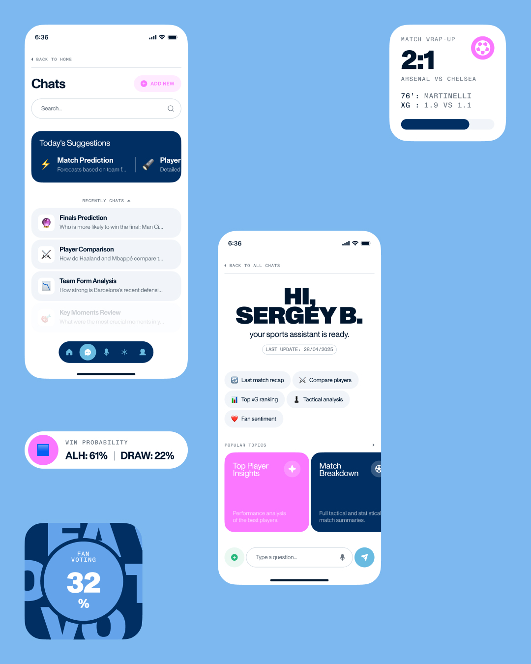 Brand and app for an Al assistant that stays with you beyond the game highlights.