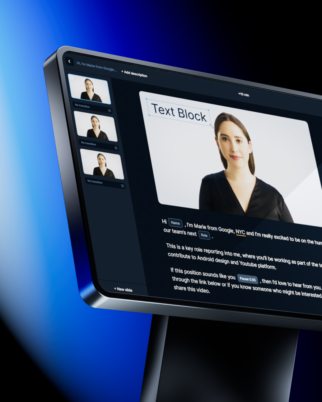 UX/UI design for AI video platform. B2B proptech product lets users create studio-quality video from text.