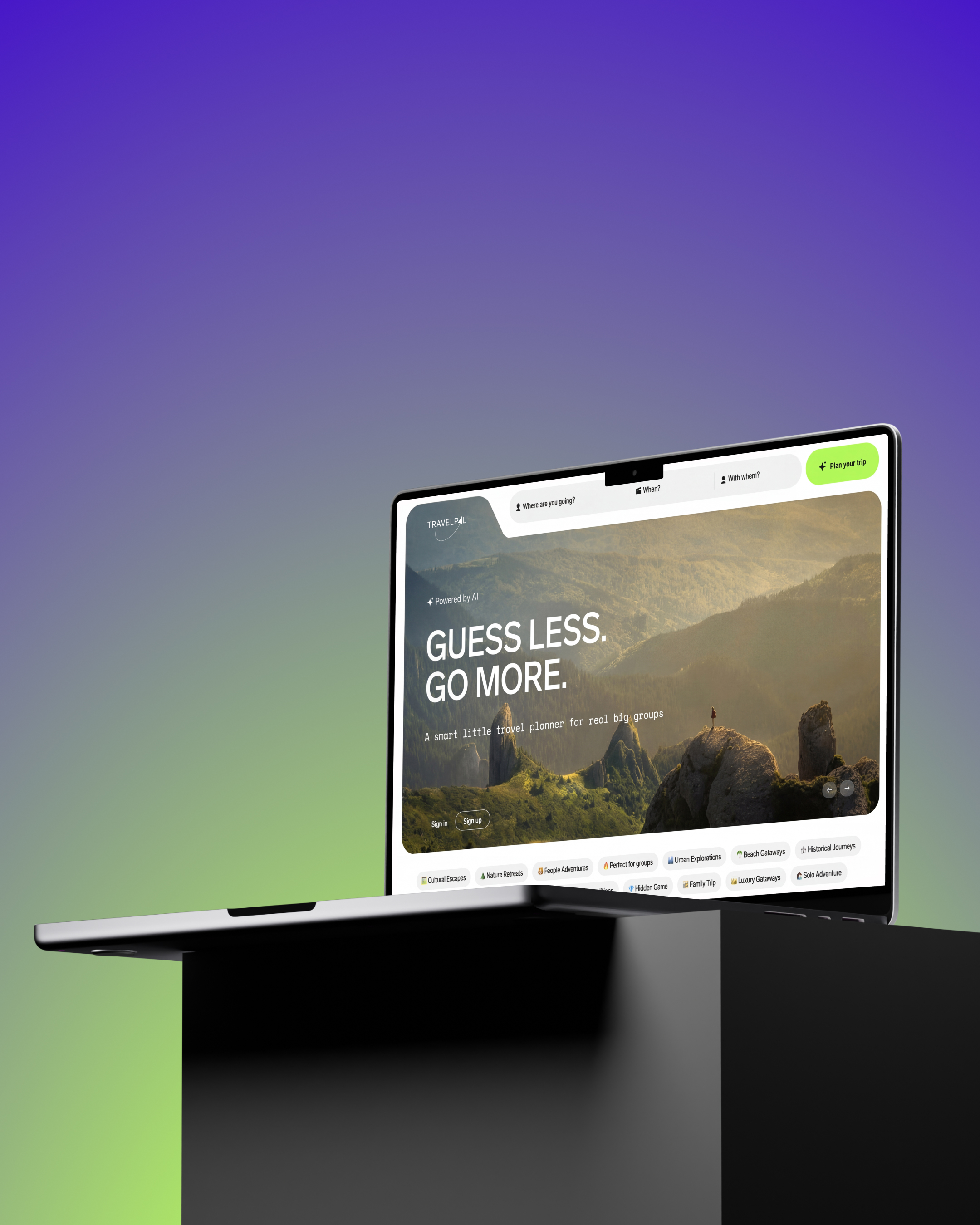 Brand and app UX to showcase platform's vision and get the first leads. A smart little travel planner for real big groups.